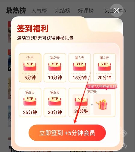 7、点击“立即签到”即可获得平台给出的福利