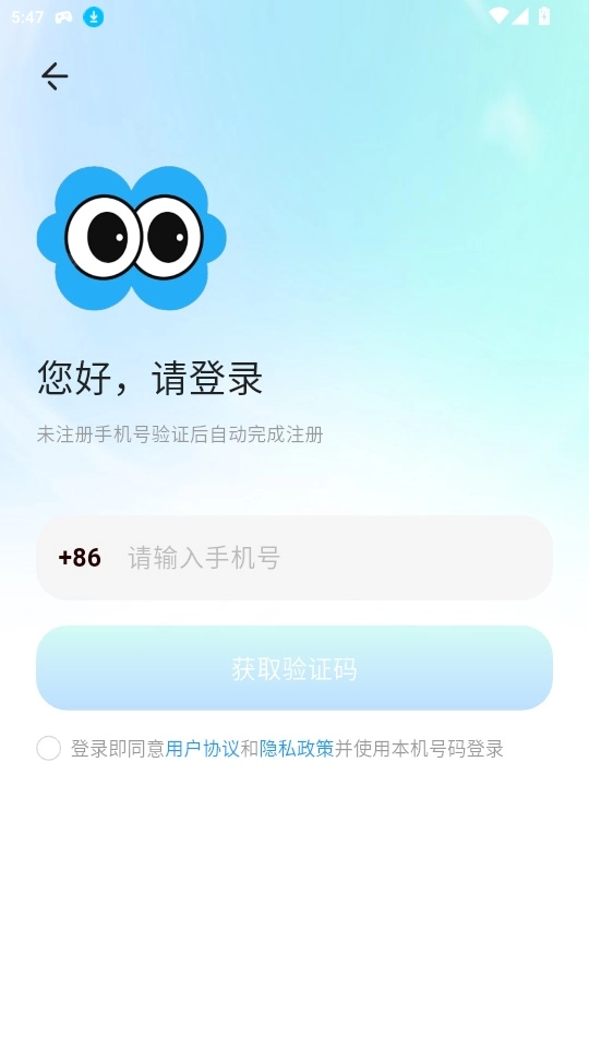 1.打开软件阅读“用户协议和隐私政策”点击“同意并继续”进入