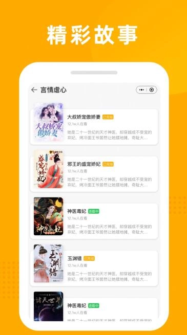 《狐仙免费小说》是一款为你提供免费阅读服务的小说平台,这里的小说种类十分齐全,追书体验贴合你的操作习惯,完全符合你的期望。平台收录的小说数量也非常多,用户可以随意点击阅读,每本小说都能带来不同的阅读感受。你还可以直接将喜欢的小说添加到收藏夹,方便下次快速选择,为你带来全方位的畅快阅读体验。