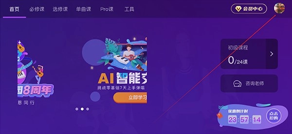 2、进来之后,全是关于吉他的一些教程,当你觉得这个乐器不适合自己时,点击头像