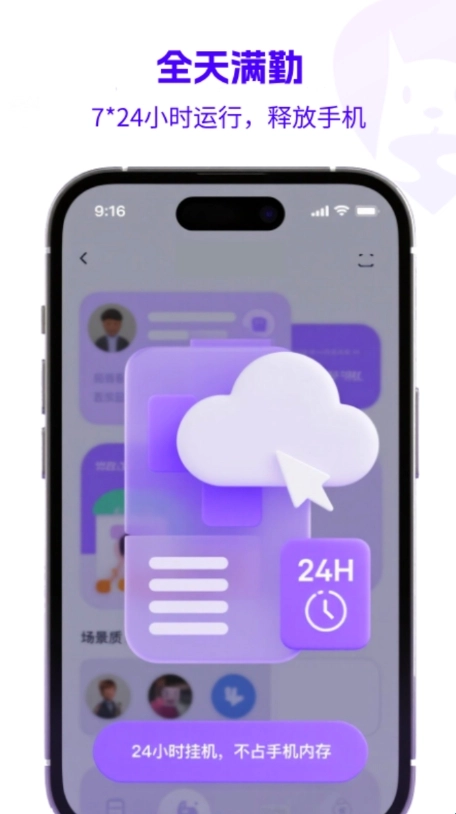 2、7*24小时在线运行不宕机,关机、断网也持续,释放你的真机。