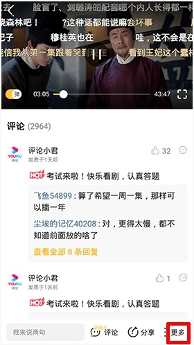 在全屏状态下按【...】这个按钮,出来的功能是【分享】、【缓存】、【收藏】。