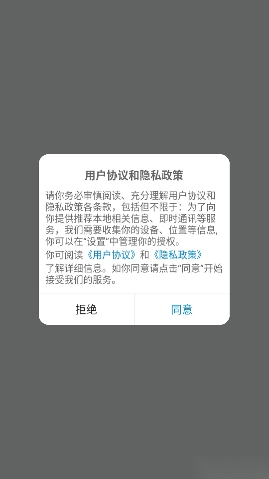 1.打开软件阅读“用户协议和隐私政策”点击“同意”进入