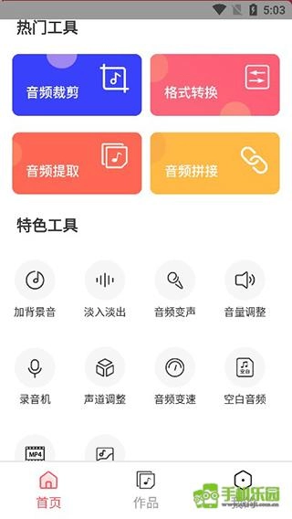 2、在首页可以看到格式转换、音频提取、音频拼接、加背景音、音量挑战等众多功能;