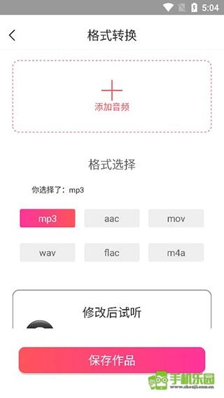 3、小编以格式转换功能为例,该功能支持mp3、acc、mov等多种音乐格式之间的相互转换。