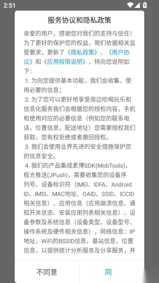 1.首先打开软件阅读协议和隐私政策后,点击“同意”按钮进入