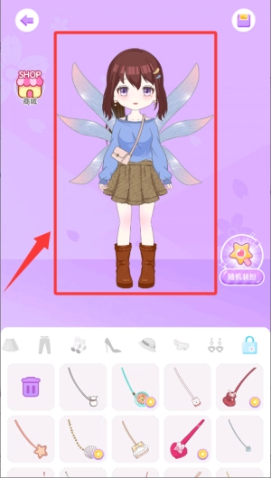 3、在装扮区域挑选发型与服装等元素,自由搭配个性造型。