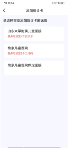 3、选择要绑定的医院,点击进入输入卡号信息即可完成绑定。