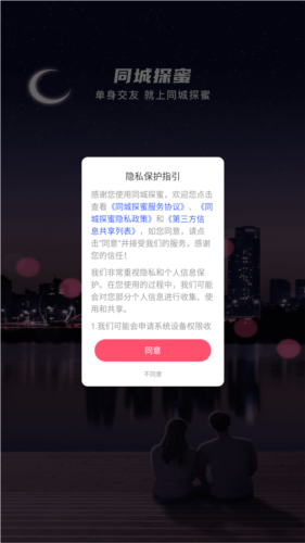 同城探蜜是海南峰娱网络科技有限公司推出的社交聊天应用,用户需完成登录与实名认证方可使用,内容具备可信度。这款安卓应用致力于帮助人们更好地融入城市生活、结识新朋友,通过提供社交互动平台,方便用户交流分享生活经验,为大家带来更多温暖与帮助。