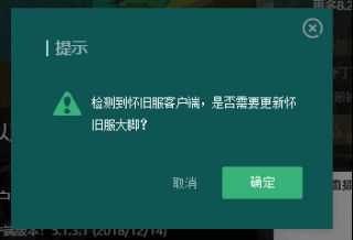 4、出现“检测到怀旧服客户端,是否需要更新怀旧服大脚”,请点确定更新怀旧服插件。