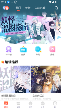 1、安装并启动茄子漫画,进入主界面即可开启漫游之旅。