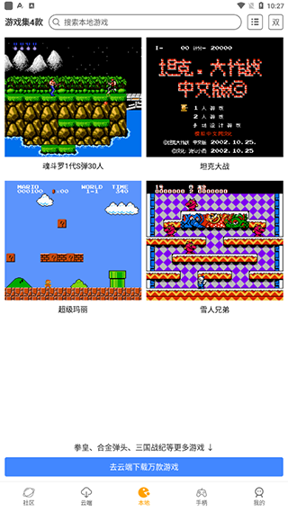 2、菜单栏中心是“本地”板块,软件默认会为用户提供实况本地街机游戏资源。实际上,这里的大部分游戏无需下载即可在线即玩,但下载后能方便后续再次游玩,并且占用的内存空间也比较小。