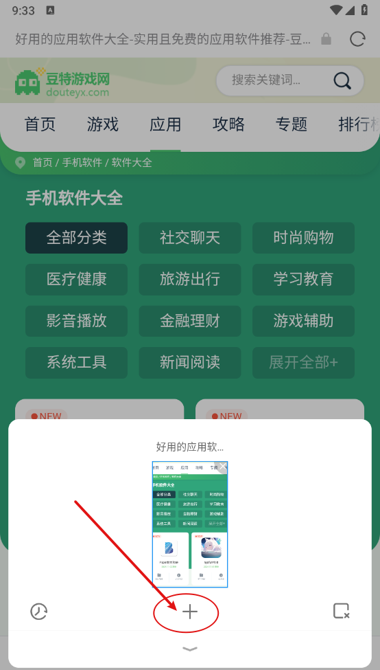 2、如图所示,点击“+”号,在这里可以根据个人需求添加多个页面。