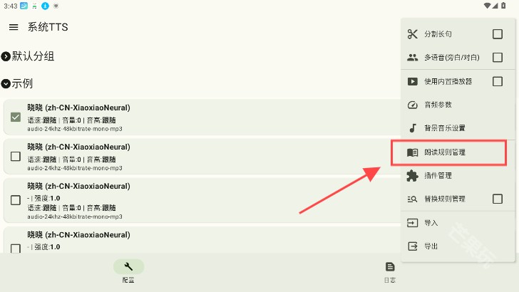 3、最后就可自定义管理或是加入朗读规则了