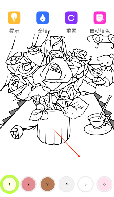 2、复杂图案可采用分层填色的方式,先把大面积的背景色填好,再着手处理细节部分,这样能防止颜色混淆,让填色效率更高。