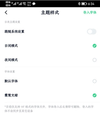 3、在字体设置页面的右上角,有一个“导入字体”按钮,点击该按钮后会进入字体管理界面。
