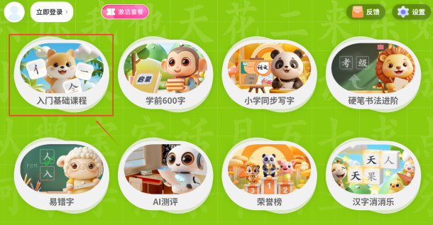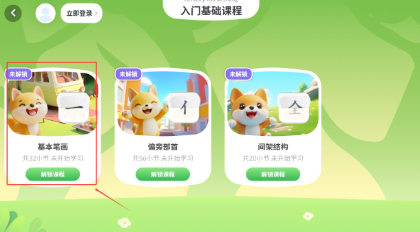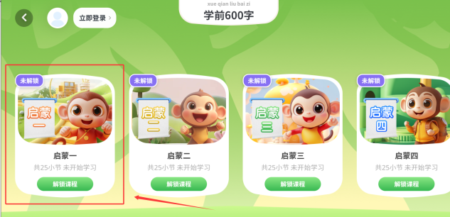 3、进入学前600字后,需要登录解锁课程,可以按照选项选择下一步学习即可。