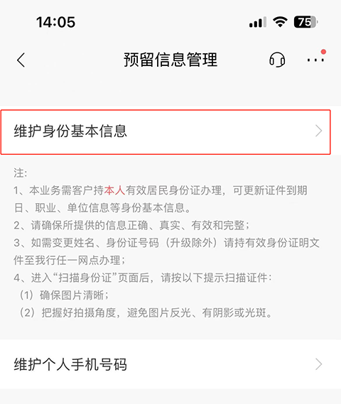 4、进入预留信息管理页面后,点击“维护身份基本信息”。