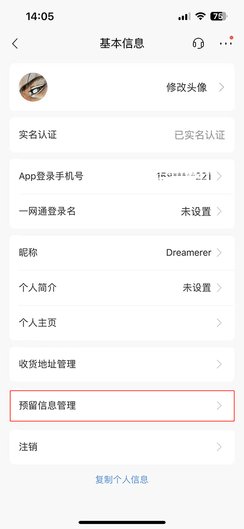 3、在基本信息页面中,找到并点击“预留信息管理”选项。