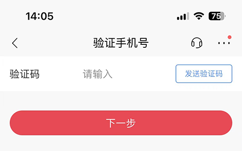 5、系统会自动发送验证码到预留的手机号中,输入验证码后点击下一步。