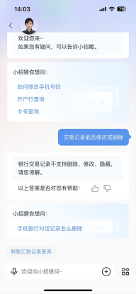 在招商银行里,交易记录是不支持删除、修改或者隐藏的。按照监管部门的相关规定,交易记录必须保存在银行系统当中,用户没办法直接对其进行删除操作。