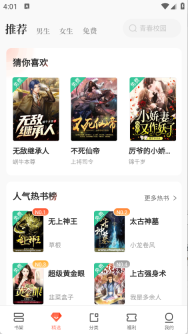 2、精选页面汇聚了当下热门的小说资源,涵盖男生、女生等多种类型。