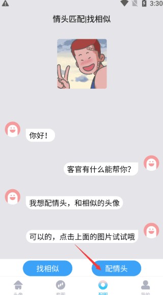 3、选择完毕图片后,点击配情头便可以找到相似的啦!