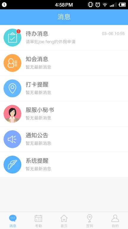 3、接收公司最新的通知信息,可在消息页面查看通知公告里的最新消息内容;