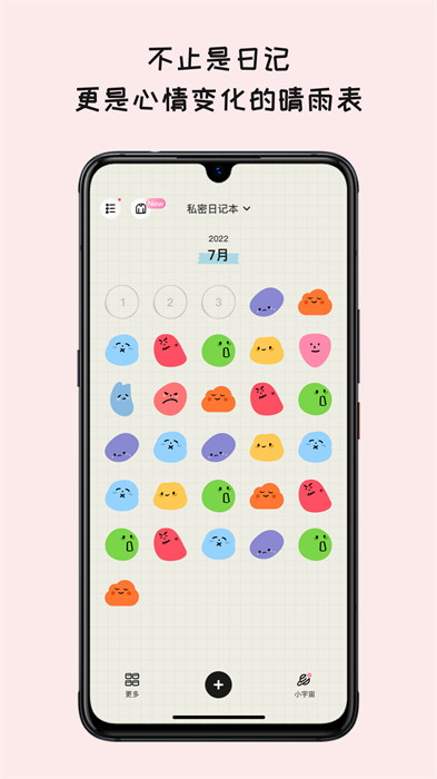 1、每天的情绪,有很多可爱表情相伴,超级可爱的心情日记手帐;