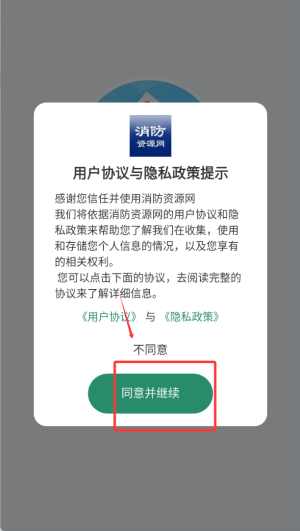 1、 轻点同意选项,就能马上开启应用使用流程,快速进入消防知识的学习空间,为之后深入了解消防规范等内容打好基础。