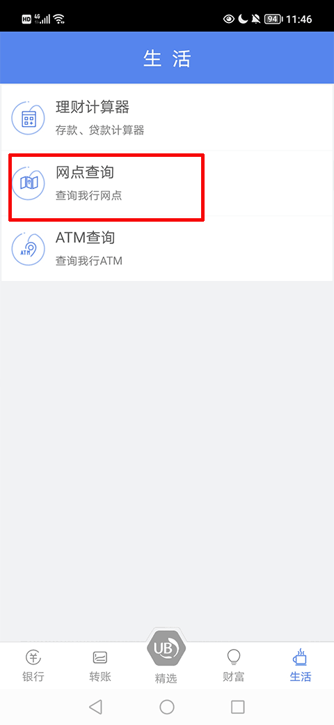 1、首先,打开软件,在生活界面找到并点击“网点查询”选项;