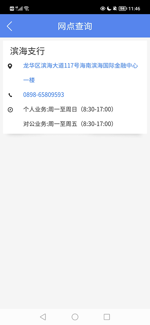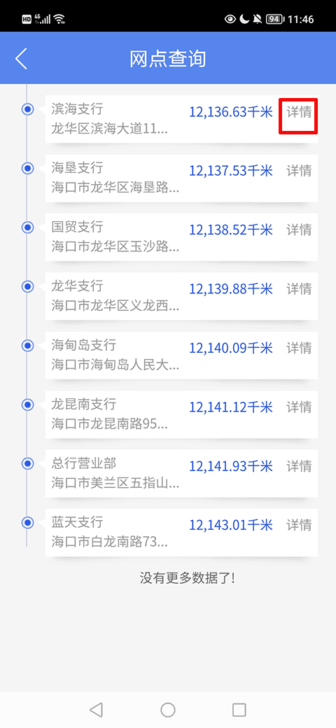 2、接着,在网点查询界面里点击详情按钮,查看该网点的具体信息详情。