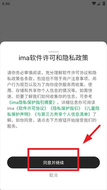 1、在本站完成ima安装后,打开软件,仔细阅读并同意隐私政策,即可进入登录界面。