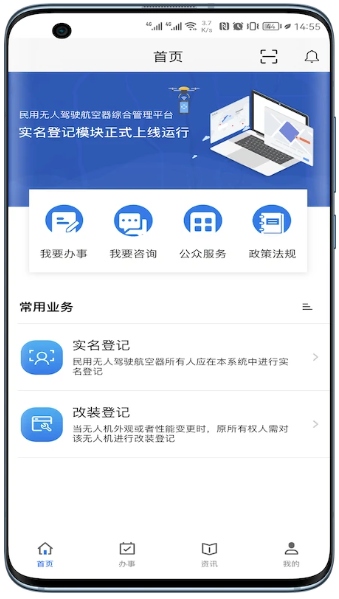 用户可通过UOM软件便捷完成无人机实名登记、改装登记、注销登记、驾驶证申请及电子证照管理等操作。