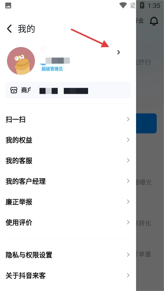 2、在“我的”页面点击箭头,进入个人中心页面。