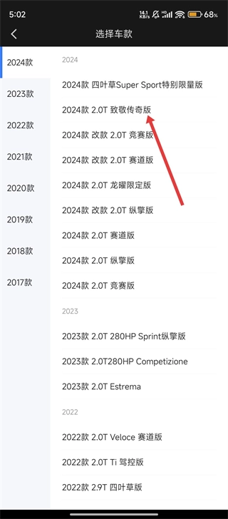 3、进入车款选择页面,我们选择对应年份款式哦。