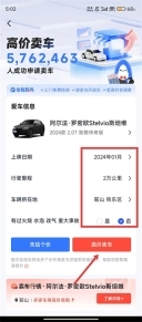 4、填写【上牌日期】、【行驶里程】等车辆相关信息,仔细核对确认无误后,点击【高价卖车】按钮,即可成功提交卖车申请。