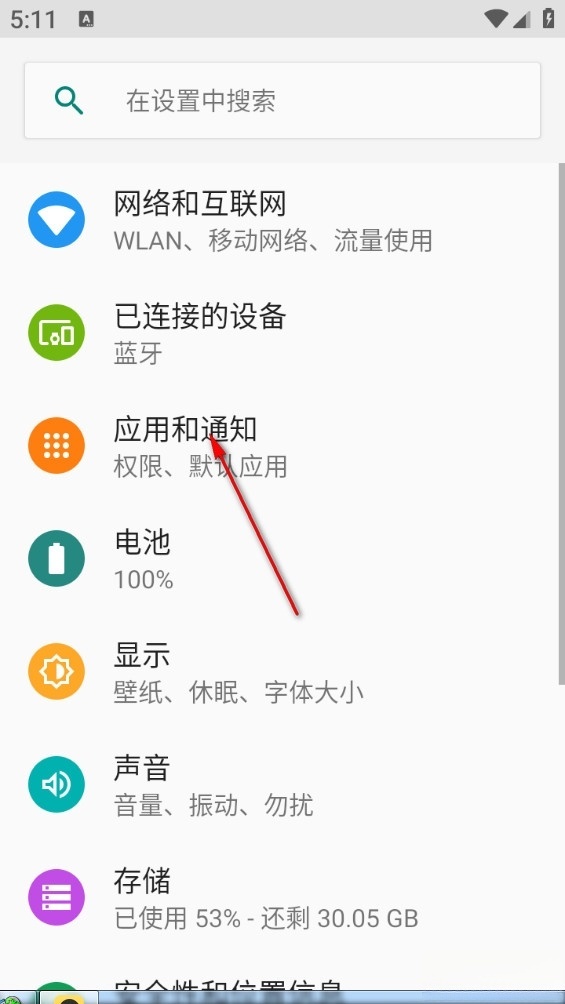 1、打开系统设置找到应用通知