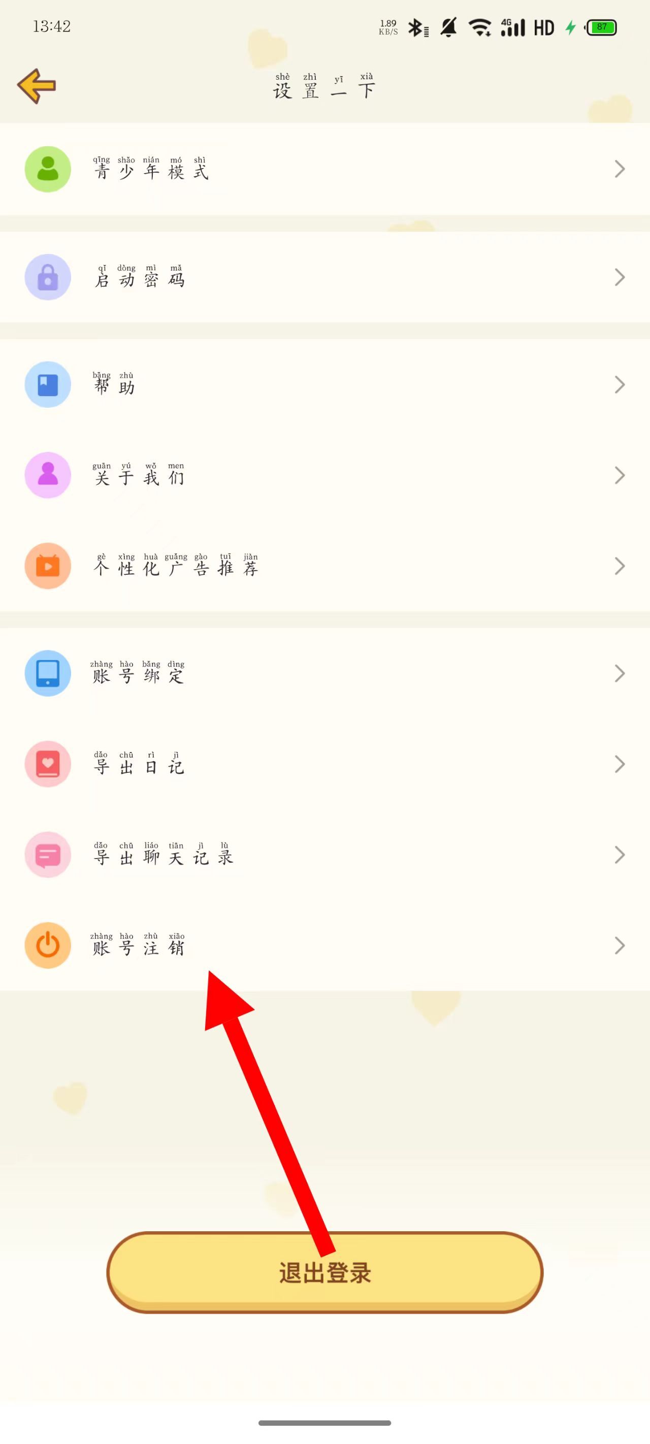 2、进入设置页面后,点击账号注销选项。