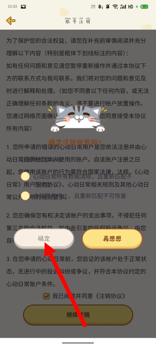 4、在弹出的确认框中,点击确定按钮,完成账号注销操作。