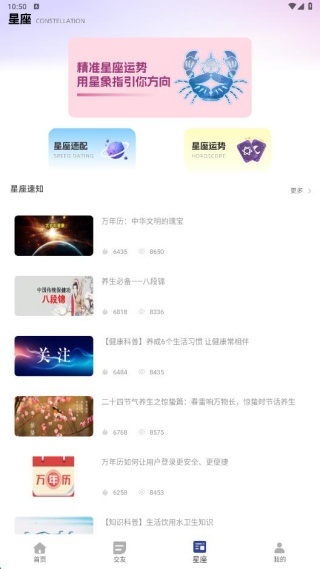 4、星座页面展示了速配功能,让你知晓自己和哪个星座的异性最搭。