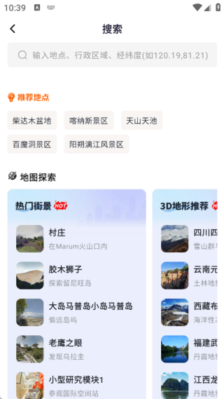 2、在搜索页面中输入地点或行政区域、经纬度即可快速的查看三维地图;