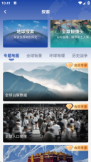 4、在探索页面中有地球探索、全球摄像头版块,还有专题地图、全球街景、环球地理、历史战争的分类。