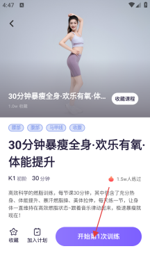 4、在课程详情页面,点击【开始第1次训练】按钮,即可开始该课程的训练。