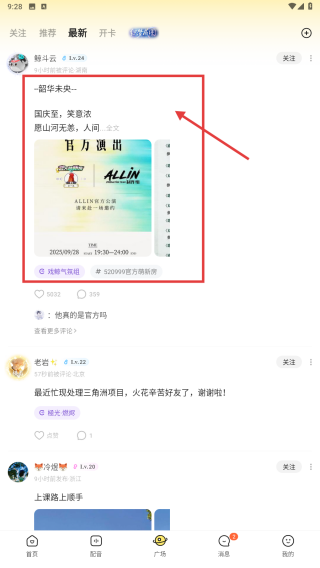 2、在广场页面,点击最新分类,浏览最新动态列表。
