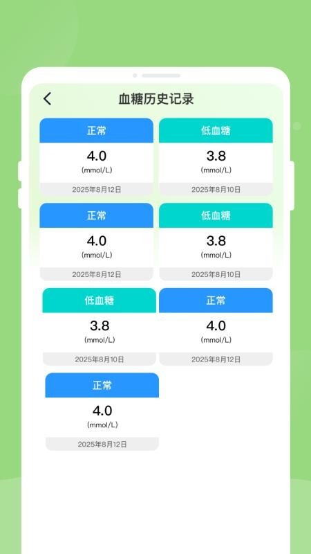 在历史详情中心,你能够查询到血糖和血压的历史记录详情,从而知晓这些记录的具体明细。