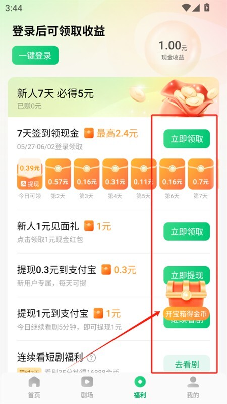 6、在福利页面完成任务可以领取各种现金红包奖励