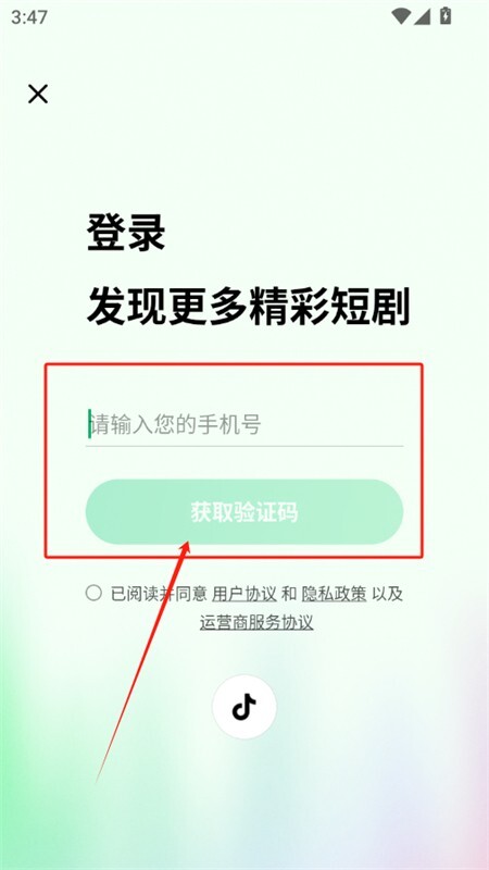 3、输入手机号和验证码即可登录