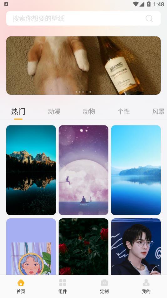 1、具备热门壁纸推送与分类搜索功能,能帮助用户快速定位心仪壁纸,支持一键设置,且提供多种风格可供挑选。