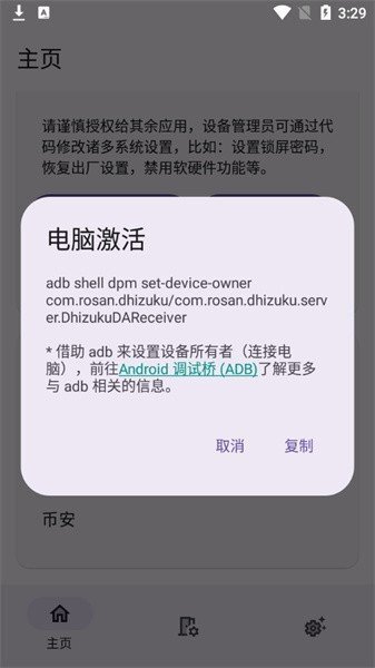未root设备:遵照Dhizuku 中的指引,通过adb启动服务。使用adb并不难,网络上有不少教程可以帮助您学会使用它。